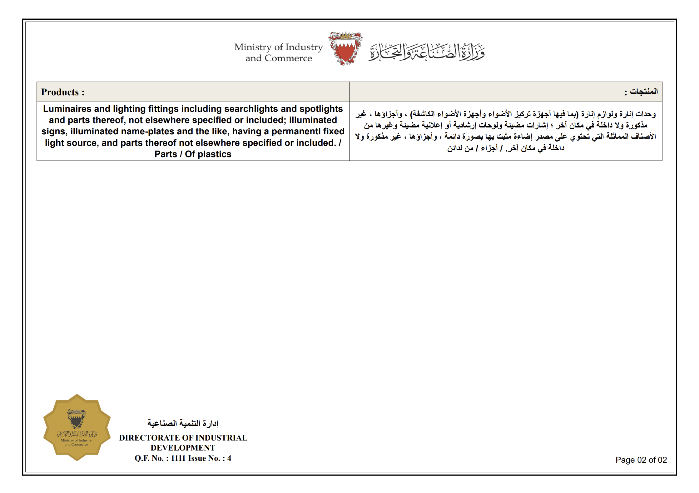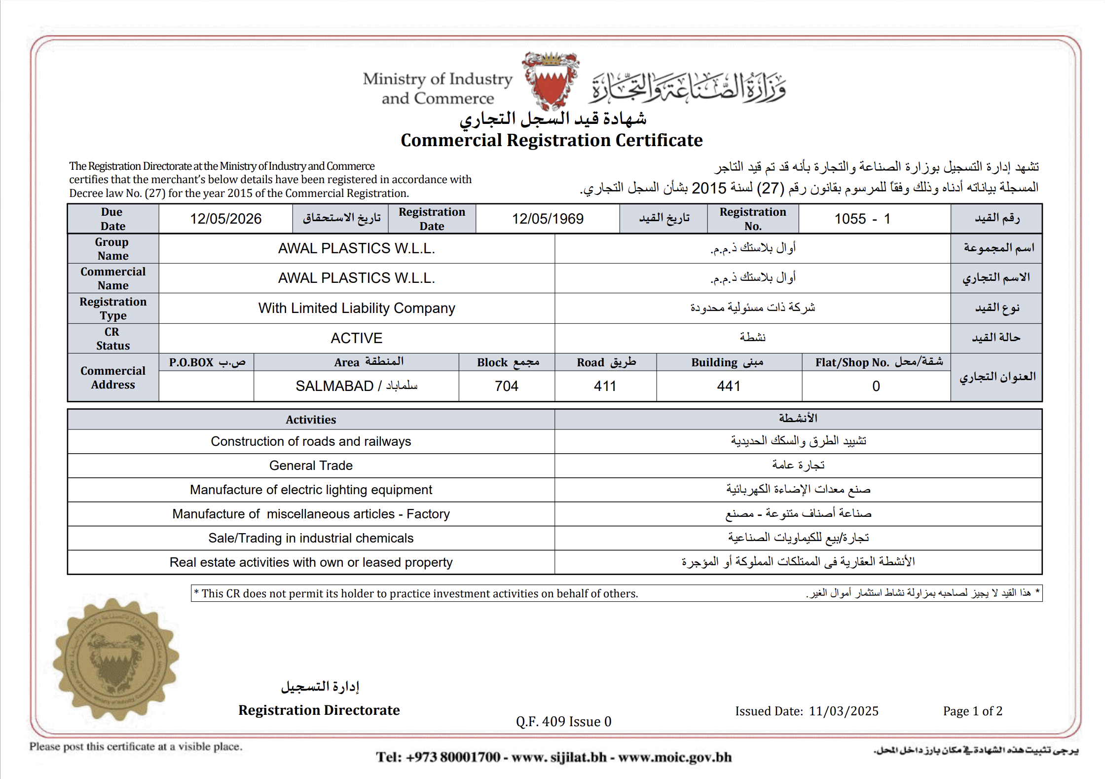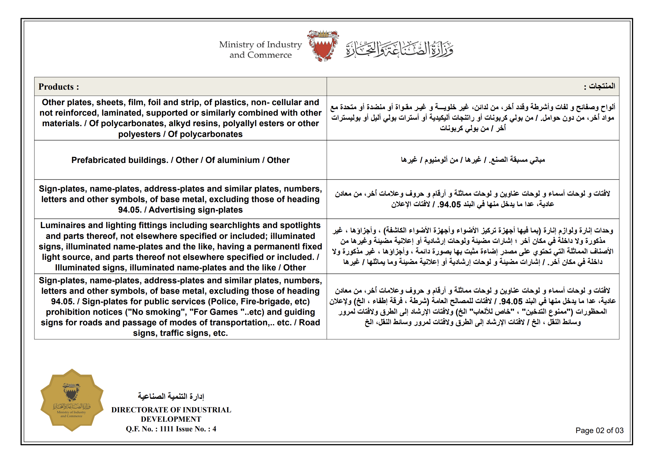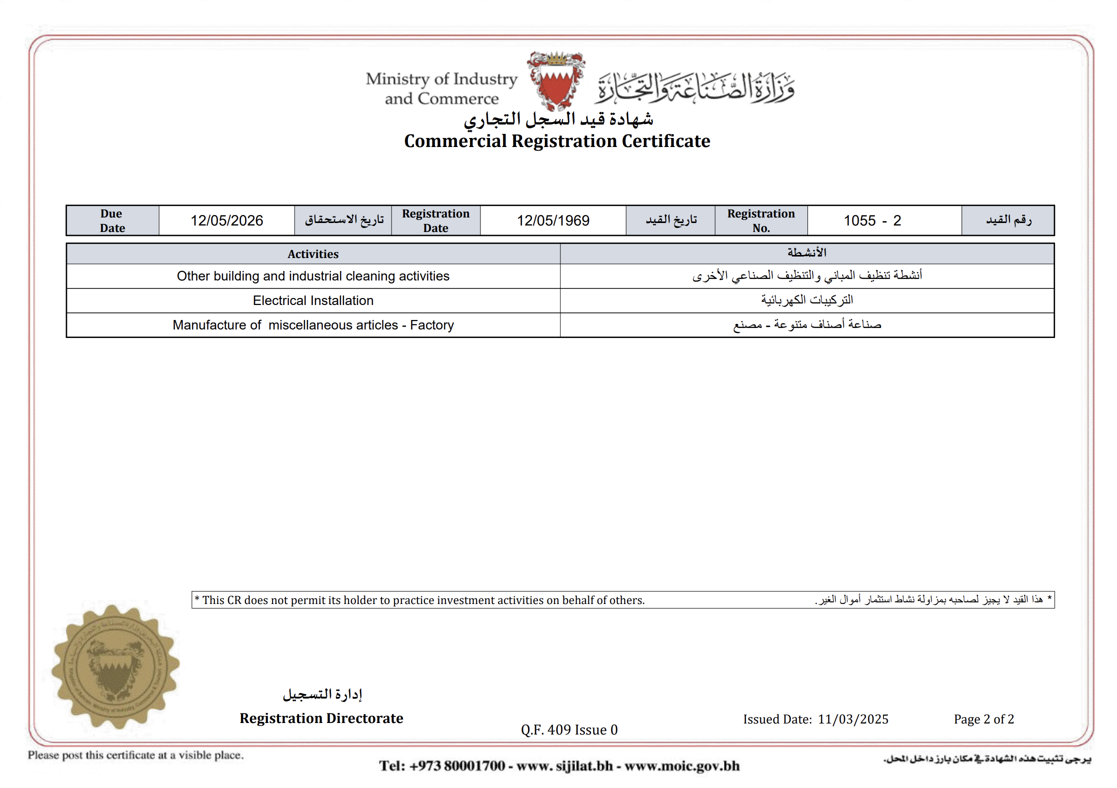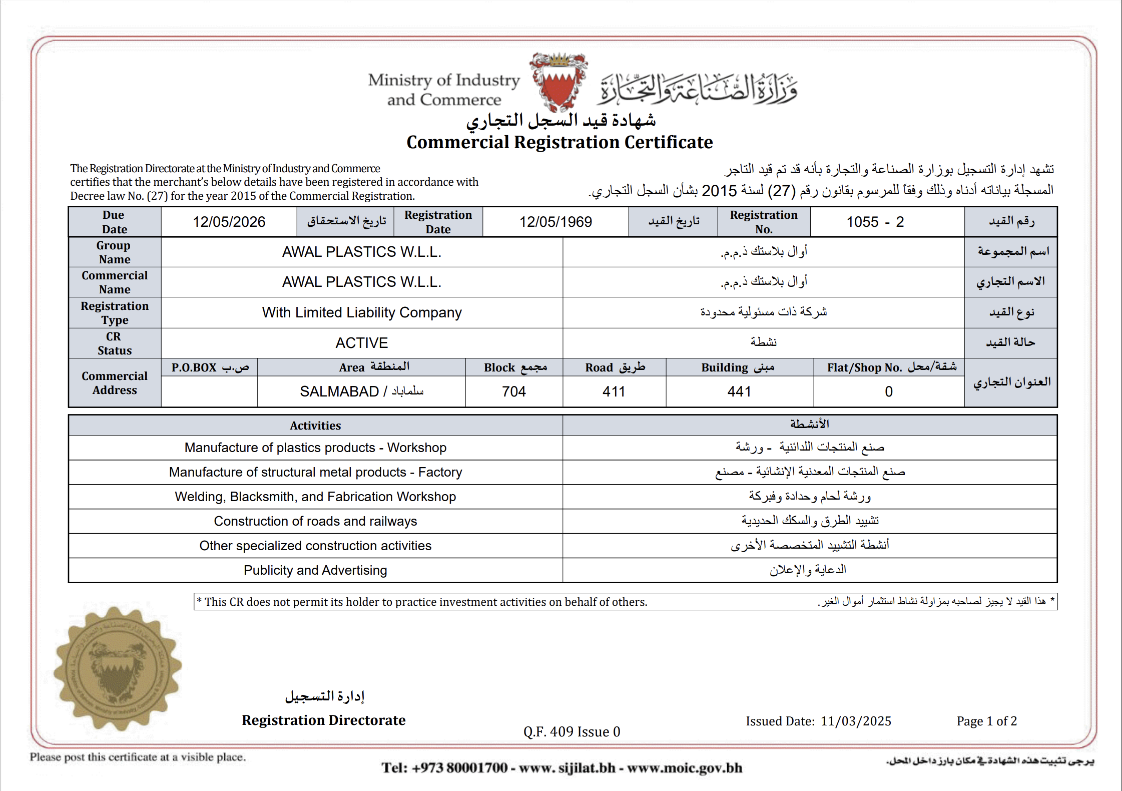MADE IN BAHRAIN MARK REGISTRATION CERTIFICATE